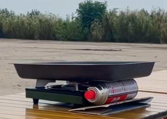 为了方便携带,两家人配备的烧烤工具并非是烧烤架,而是一个小罐装的卡式炉。