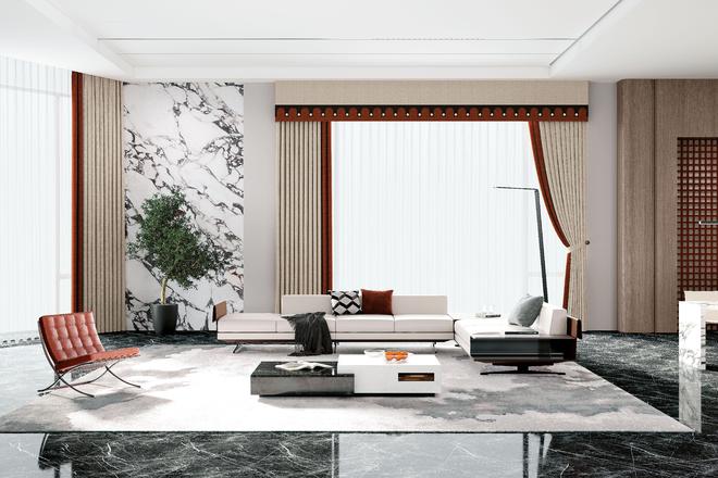 此外,沙发上方不宜有横梁压顶。横梁会带来压迫感,影响居住者的精神状态与运势,导致情绪烦躁、做事不顺。若存在这种情况,可通过吊顶将横梁隐藏,或摆放开运竹等向上生长的绿植来化解。