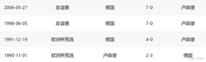 其实德国和卢森堡之间的交锋非常有限,而且双方最近的一次交锋也都是19年前的事情了。而由于卢森堡作为一支足坛的弱旅,所以每次面对德国队时,德国战车也总能至少打进3粒进球而彰显他们的强大进攻火力。
